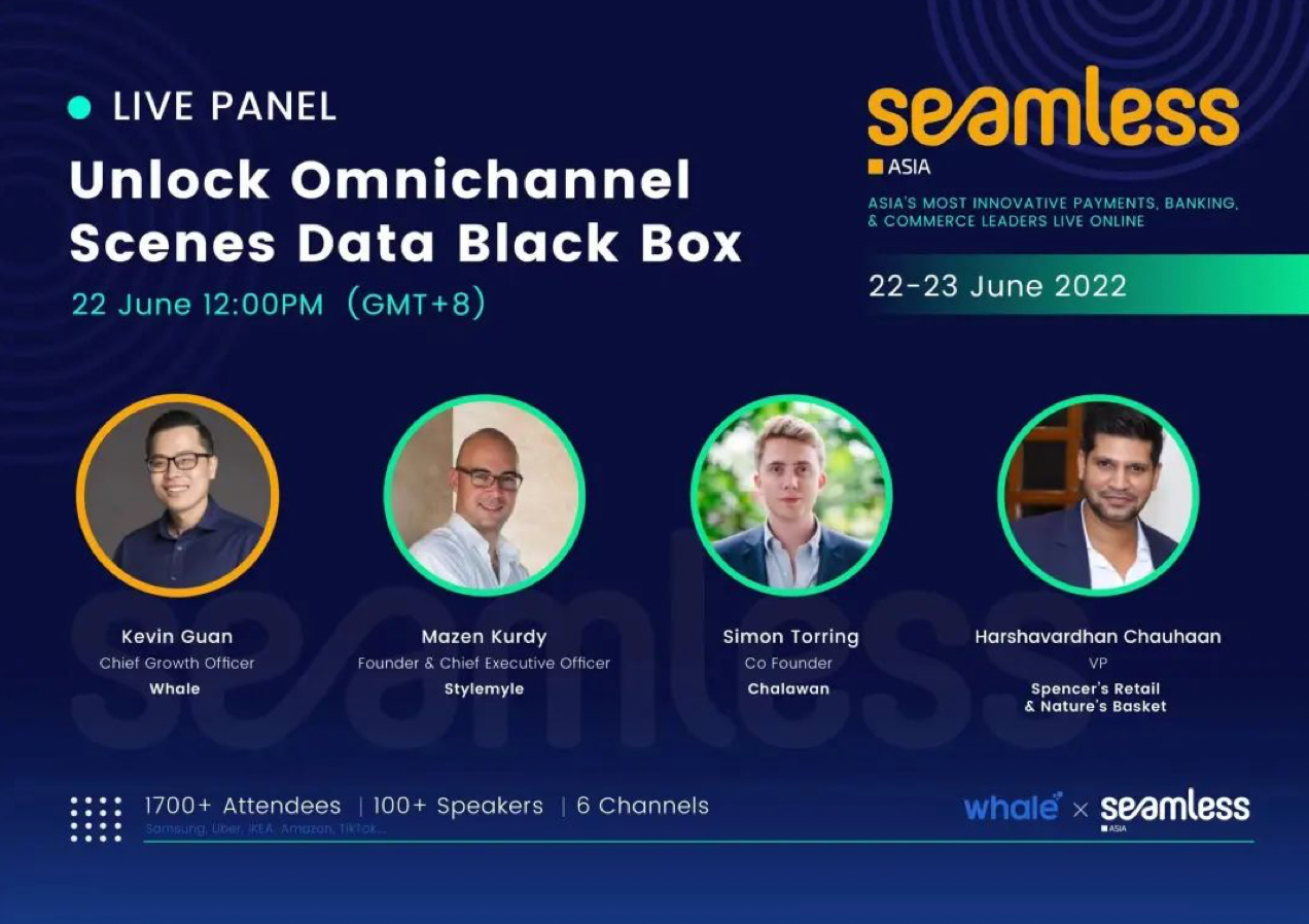 On June 22nd, the world-renowned exhibition group Terrapinn hosted Seamless Asia 2022, where Whale's Chief Growth Officer, CGO Guan Herong, was invited to join Simon Torring, Co-Founder of Chalawan, Mazen Kurdy, Founder & CEO of Stylemyle, and Harshavardhan Chauhaan, VP & CMO & COO of Spencer's Retail & Nature's Basket, in a session titled "Unlocking the Data Black Box for Omni-Channel Scenarios". Kurdy and Harshavardhan Chauhaan, VP & CMO & COO of Spencer's Retail & Nature's Basket, participated in an online roundtable discussion themed "Unlocking the Black Box of Data in Omnichannel Scenarios" to discuss the digital future of brand They discussed the digital future of brand marketing and showcased Whale's cutting-edge product innovation and technological strength to the world.